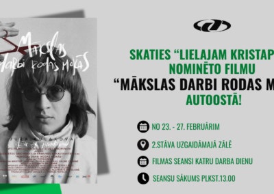 Paldies Latvijas Kinematogrāfistu savienībai par iespēju Rīgas starptautiskajā autoostā demonstrēt Nacionālajai kino balvai “Lielais Kristaps” nominēto filmu “Mākslas darbi rodas mokās”!